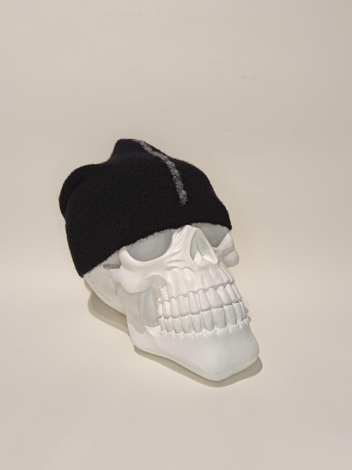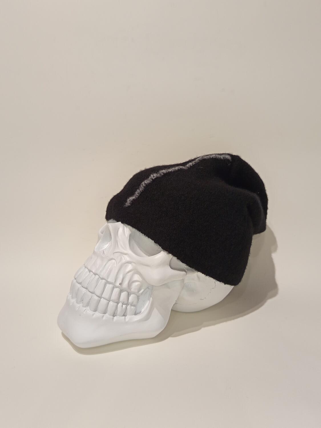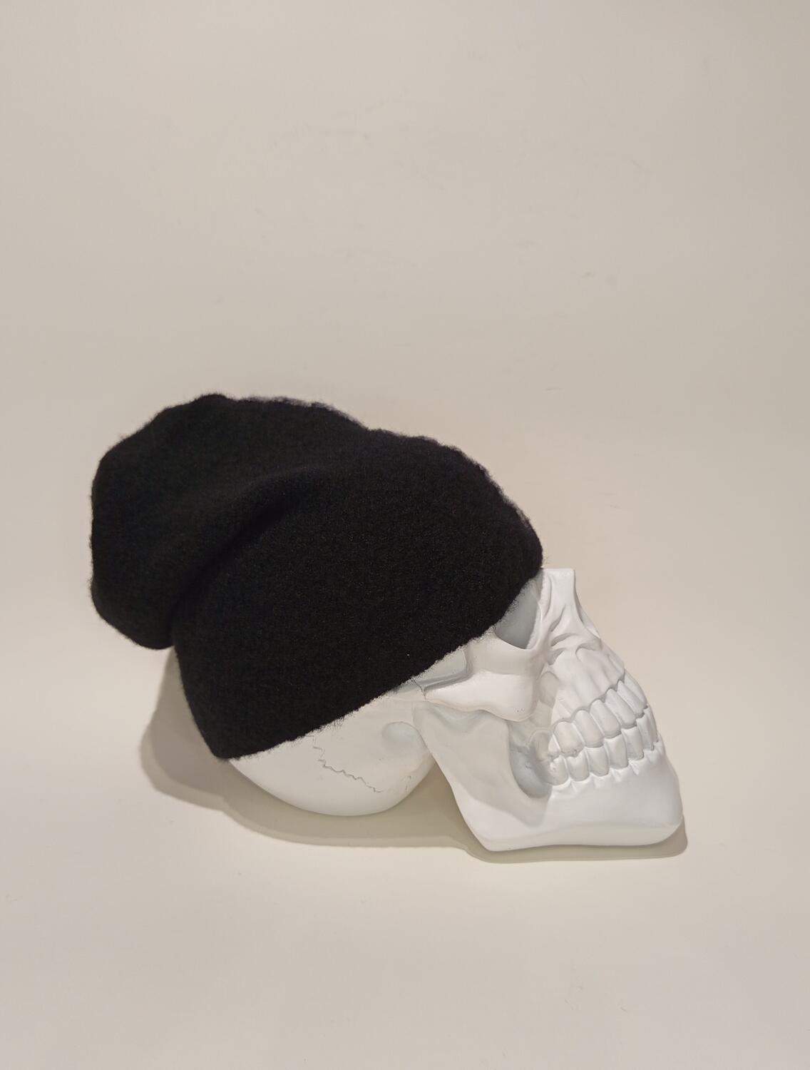 Morbido berretto in caldo tessuto colore nero con lavorazione centrale.