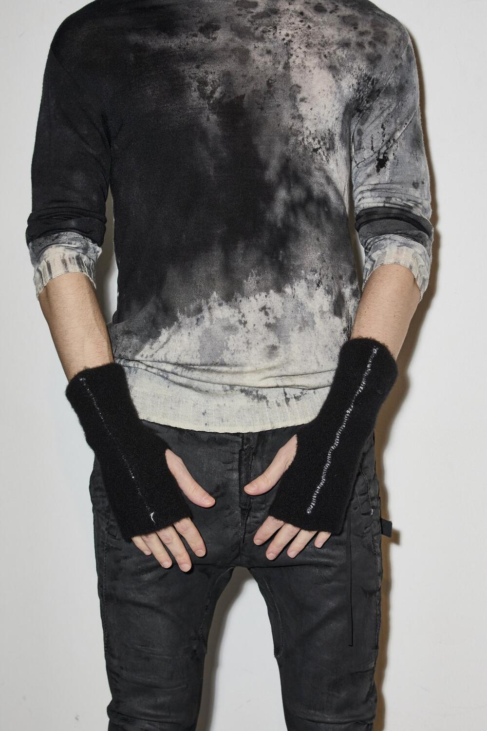 Morbido Guantino senza dita colore nero con lavorazione in rilievo, reversibile.