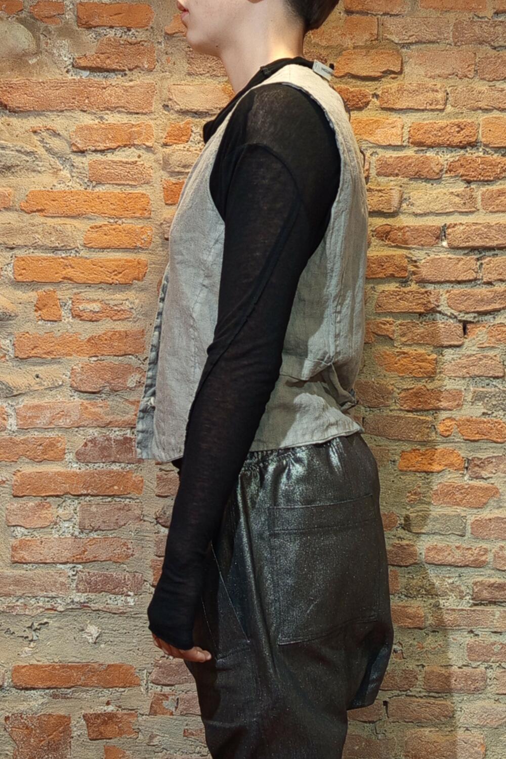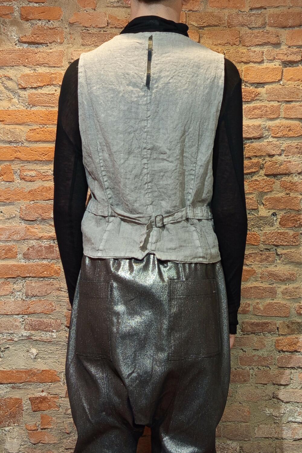Gilet 3 bottoni colore grigio, con minispacco posteriore e martingala regolabile.